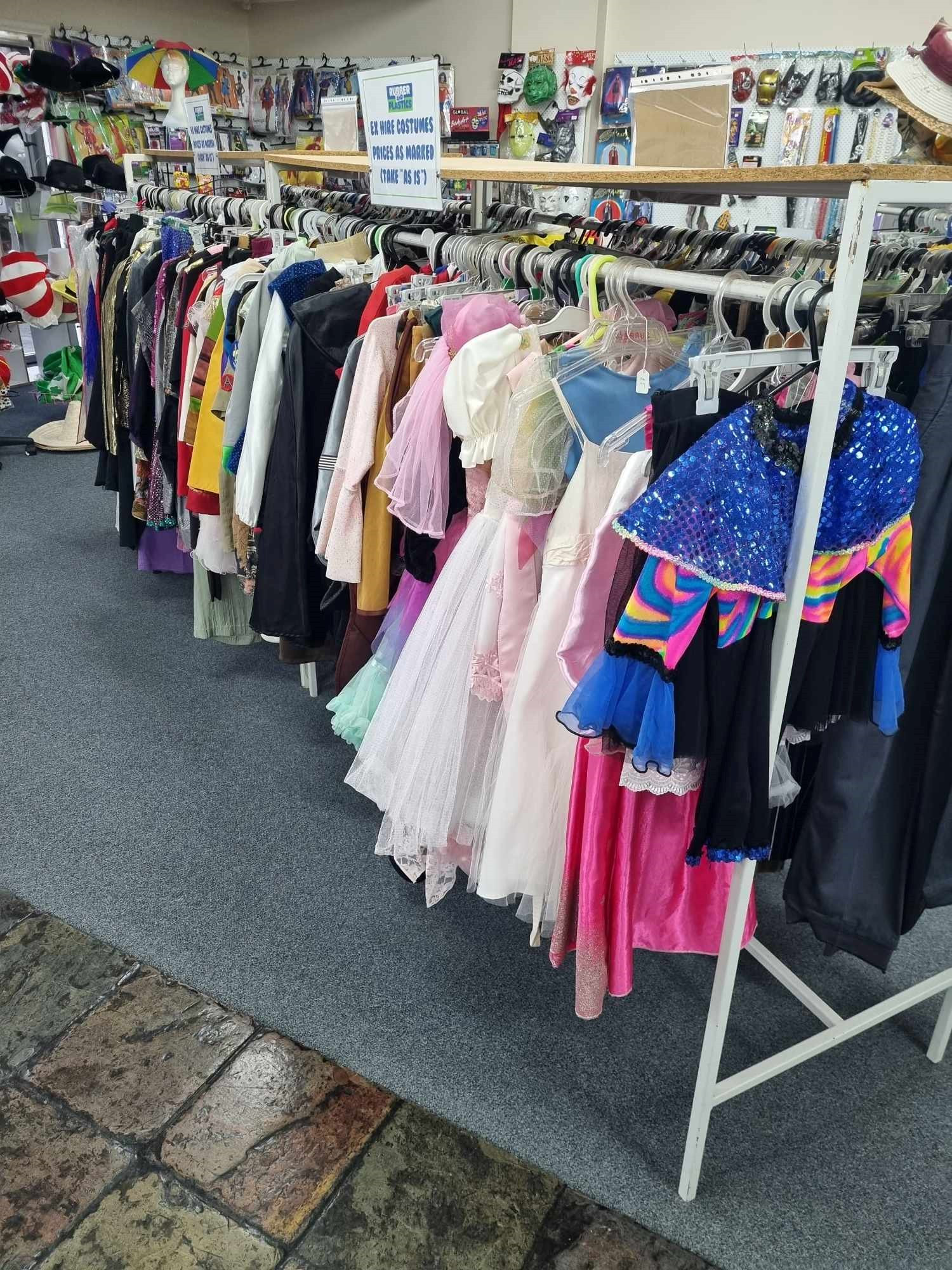 We have acquired a HUGE quantity of quality ex-hire costumes for men, ladies and children, along with thousands of accessories to suit. Prices are as marked on items, and you take as is. These items are one-off items, and never to be repeated, so hurry in to check out what we have!